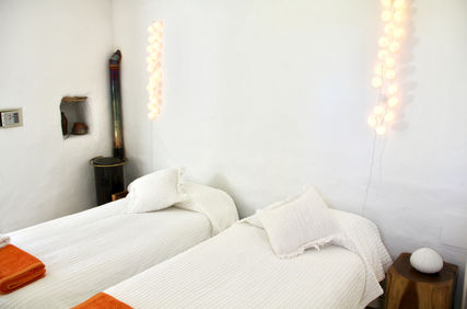 The Twin Flame Micro-Suites YIN and YANG are a pair of detached stone dwellings representing the twin flames of yoga theory that all you have is all you need. These havens are a delight for those who are comforted by cozy spaces. Intimate in scale, but long on charm, these rooms are physical reminders that we have everything we need to lead happy, healthy and fulfilling lives without frills or fuss. The micro-suites YIN and YANG share a bathhouse nestled between the two suites.